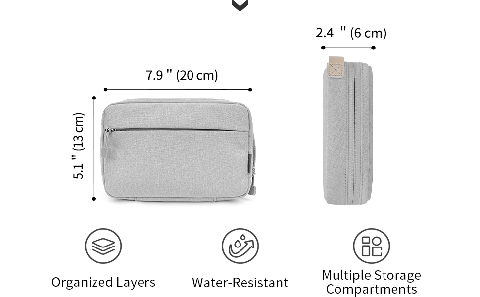 DIMENSIONS – [Outer] 7.9 x 5.1 x 2.4 inches. [Inner – size of the largest compartment] 7.1 x 4.7 x 1.6 inches. The electronics equipment case can simply be saved on your backpack, shoulder bag, purse or baggage. The strong leather-based deal with and clean zipper design makes it simple to hold.